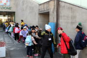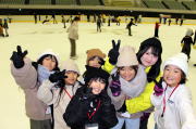 冬休み明けなので、しっかり準備体操をした後、スケート靴を借りに行きます。 |