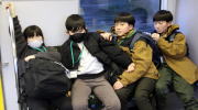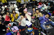 滑っている時は夢中ですが帰りの電車はいつも眠そうです! |