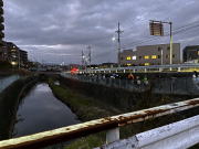 さぁ眠くてもあともう一踏ん張り、駅前の八田川の橋を渡って歩いて帰ります |